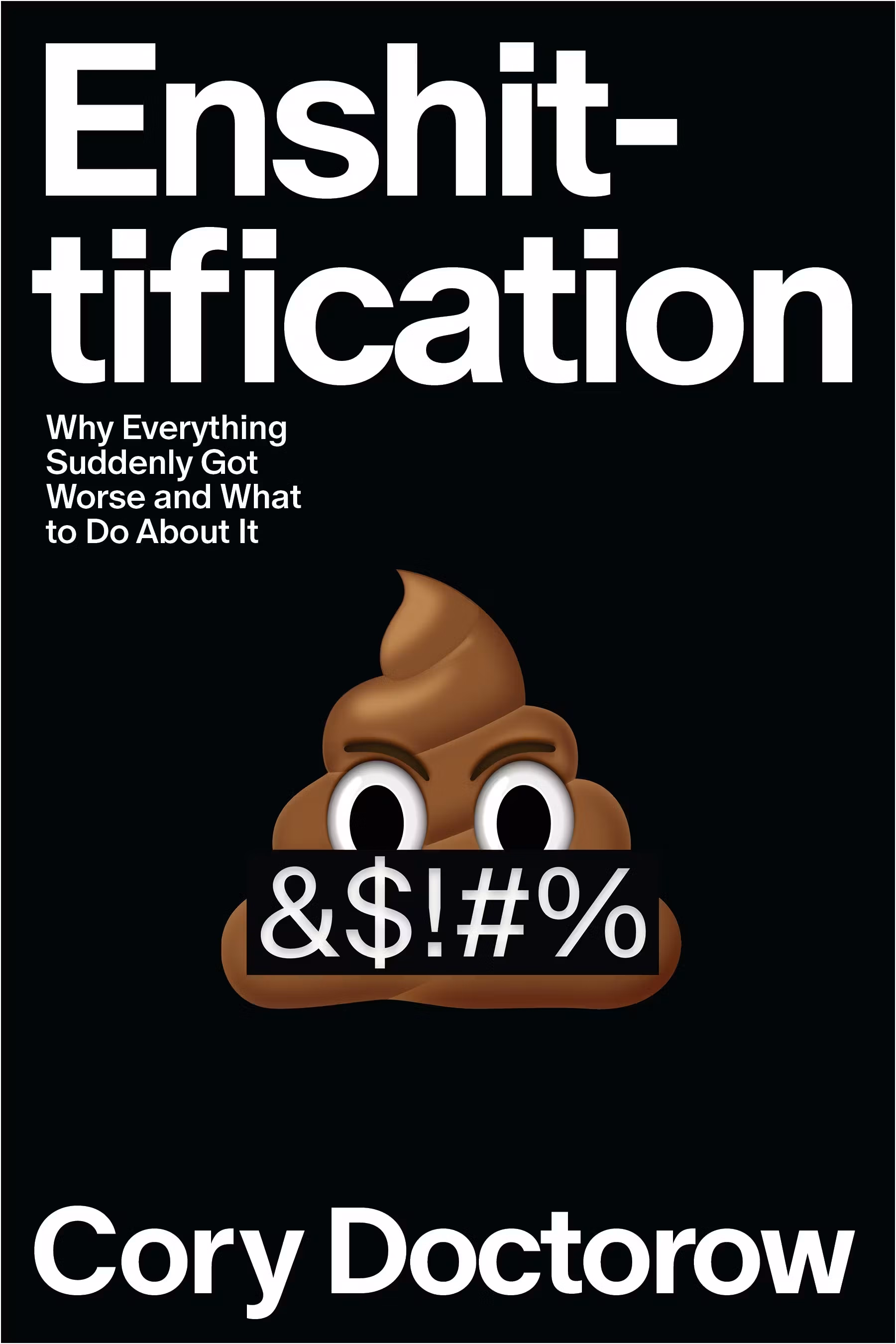 Cory Doctorow also loves coinage, which – well, justified, seeing how the word that became the book’s title helped the idea travel! But there’s a lot of others words around: enshitternet, disenshittification, twiddling, chickenization… There’s this sentence in the book: “There’s something genuinely wonderful about workers who counter-twiddle their bosses’ apps and escape reverse-centaurism.” There are more like it. At this point, this feels like just bad UI.