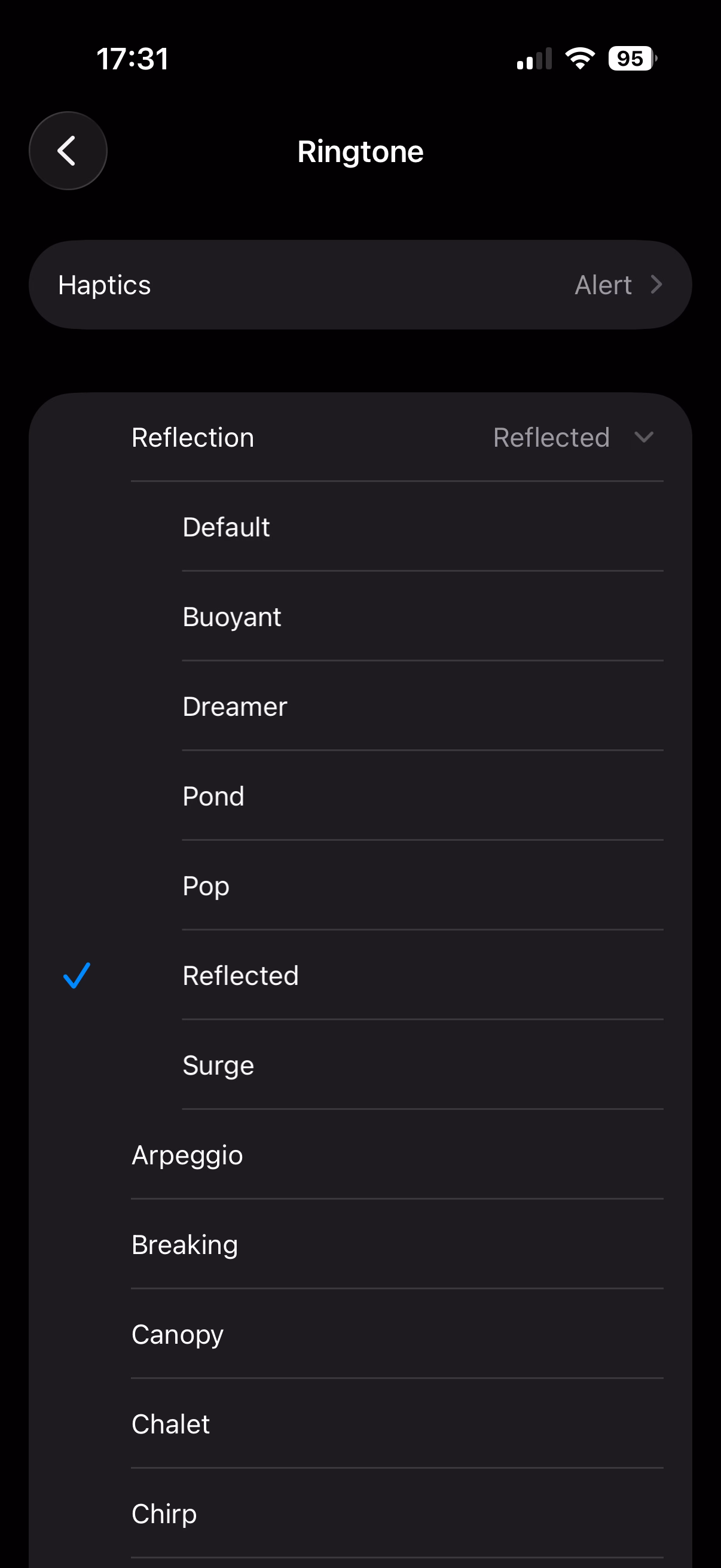 I found this weirdly delightful: There are a few new ringtones in iOS 26, but they’re not new new ringtones – they’re sort of “riffs,” or maybe remixes of a default Reflection ringtone.
